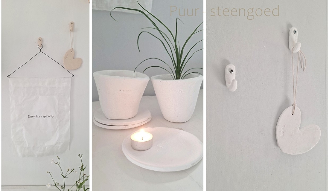 Ook net nieuw in de shop is de gipsen plantenhanger.