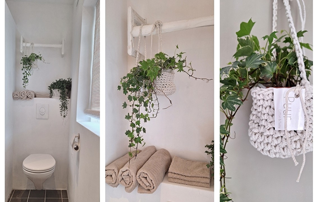 De twee Hedera zit in gehaakte mandjes hang Ilja.