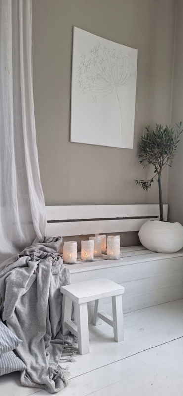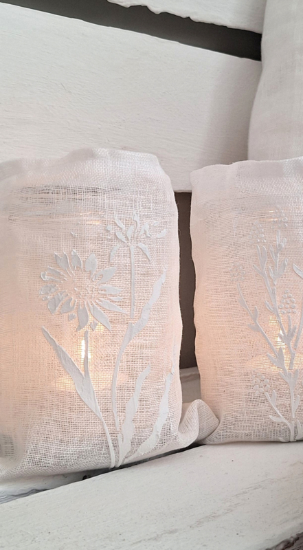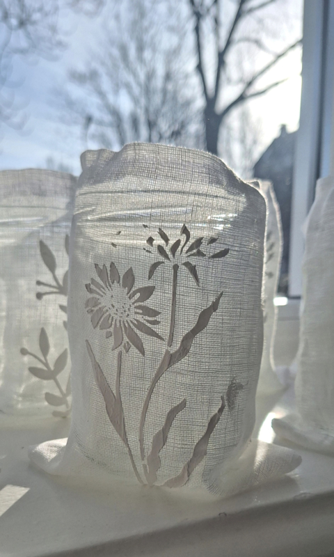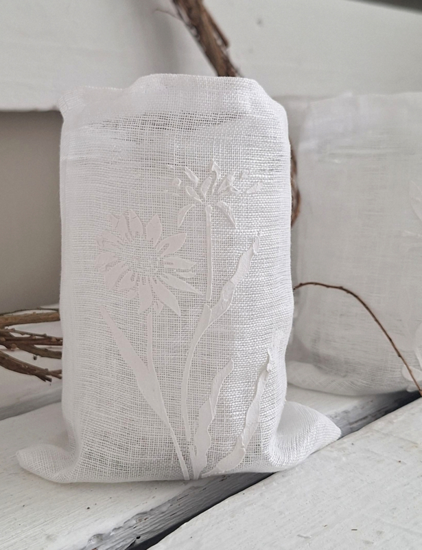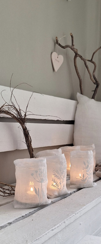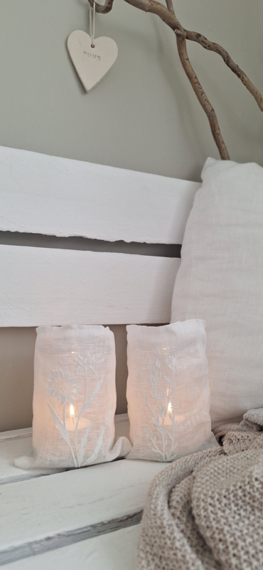 Windlichtje gemaakt van fijn linnen met een mooie 3d opdruk