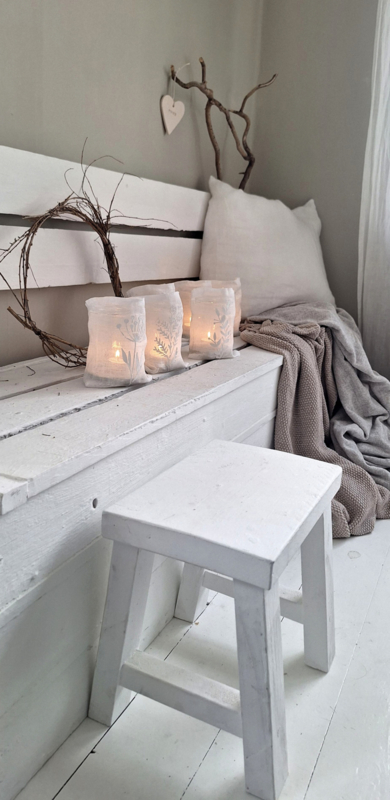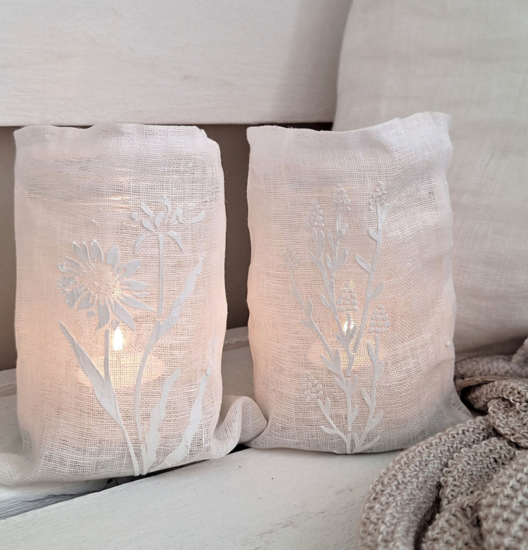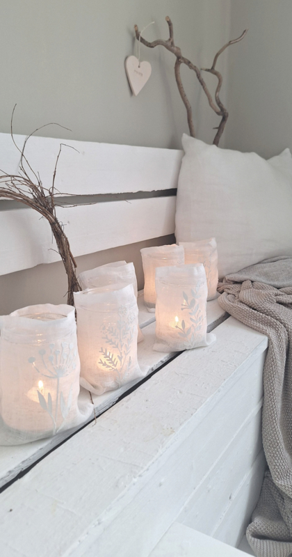 Windlichtje gemaakt van fijn linnen met een mooie 3d opdruk
