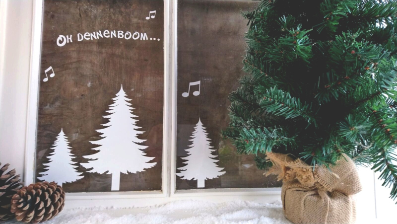 tekt Oh Denneboom met drie kerstbomen en muzieknootjes
